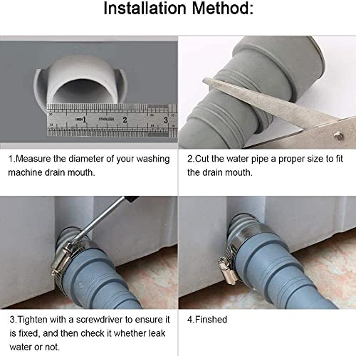 Easy to Install: Only a few minutes to hook up. 3-Step, Just cut inlet hose connection to fit washing machine outlet assembly, tightly secure with included clamps and hook end in the drain.