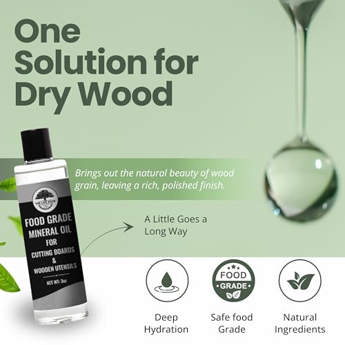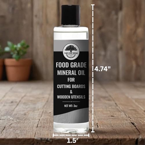 Food Grade & Safe for All Surfaces: The Live Edge food grade mineral oil for wood cutting board is 100% food safe mineral oil. It is tasteless, odorless, and ensuring safe use on all wood kitchen items. Spill Shipping Design: Unlike competitors, we use a secure plastic neck wrap to prevent leaks during shipping, so your bottle arrives clean and ready to use. Restores and Protects Wood: Our cutting board conditioner deeply penetrates wood to hydrate and protect boards, and utensils, preventing cracks and drying for long-lasting beauty. Easy to Use and Long-Lasting: Apply a small amount oil with a cloth or by hand, let it soak for a few hours, and enjoy months of protection. One bottle goes a long way. Versatile Kitchen Essential: Ideal food grade mineral oil for wooden utensils, wooden cutting boards, b knife handles, countertops, and even salad bowls – keep your kitchen looking its best.