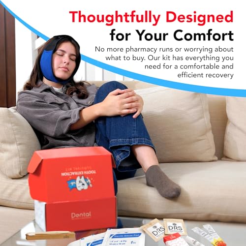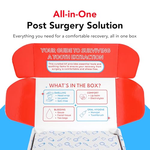 Complete Wisdom Teeth Recovery Kit: All-in-one dental surgery care for teens and adults, simplifying post-op recovery. Targeted Swelling Relief: Reusable head wrap with ice packs soothes pain and reduces swelling after wisdom tooth extraction. Gentle Oral Hygiene: Ultra-soft bamboo toothbrush and salt rinse clean sensitive areas without irritation. Hydration & Comfort: Electrolyte packets and moisturizing lip balm keep you hydrated and comfortable during recovery. Easy Post-Op Care: Monoject syringes, gauze, tea bags, and tissues make following dentist instructions stress-free.
