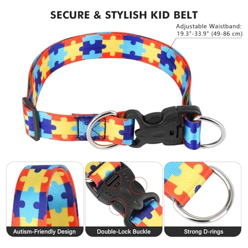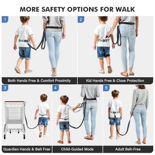 HANDS-FREE SAFETY SYSTEM: This autism waist belts with elastic tether keeps caregivers connected to child without restricting their movement. Unlike traditional harnesses and leashes that limit mobility, our waist belt design frees your hands for daily tasks without compromising safety. Adjustable belts suit most adults and children aged 3-12. GENTLE & RESPONSIVE PROTECTION: The waist leash safeguards both child and caregiver: Its shock-absorbing bungee core cushions sudden pulls, reducing strain on the child's abdomen and caregiver's waist, while three padded handles allow effortless adjustments—letting caregivers gently guide curious explorers or promptly secure them in busy areas. FLEXIBLE USAGE OPTIONS: Clip the extral D-ring to adult's belt, shortening the tether for close proximity while keeping both hands free; Grip middle/child-end handles in crowds for instant control; Let kids hold the adult-side handle to practice guided independence during walks; Connect D-rings to form a secure loop for stroller attachment or traditional handheld use. SLIDING CONNECT AND REFLECTIVE SAFETY: The sliding D-ring moves smoothly along the adult belt, reducing tug resistance during a child's side-to-side exploration. Meanwhile, integrated reflective threads ensure nighttime visibility for safer evening walks. SAFETY ASSURANCE: Reinforced webbing, durable bungee cords, and tight stitching create durable connections. Heavy-duty D-rings, buckles, and secure hooks remain strong through years of adventures. The child's safety belt features dual-lock buckles requiring two-step release, preventing little hands from opening them accidentally.