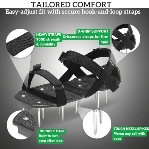 🌱 Achieve Healthier Grass Fast Aerate your lawn while walking! These lawn aerator shoes with 2.1-inch steel spikes enhance water, air, and nutrient flow for lush, healthy grass without hiring expensive services.