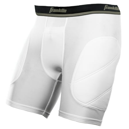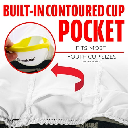 ULTIMATE PROTECTION: Franklin's youth baseball and softball sliding shorts are constructed for premium protection so kids can play safely when they're out on the field CUP COMPARTEMENT: These sliding shorts have a built-in cup compartment that will fit virtually any size youth athletic cup so you can find the perfect size and fit SUPERIOR PADDING: With built in sliding pads on the sides of the thigh and rear, these sliding shorts will protect kids legs from scrapes and bruises while they run the bases FLEXIBLE FIT: Form-fitting polyester ensures that these compression shorts fit snugly and comfortably around the waist and legs with no adjustments needed DURABLE: The high quality polyester is built to stand up to repeated slides and impacts so players can stay protected season after season