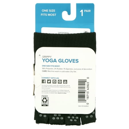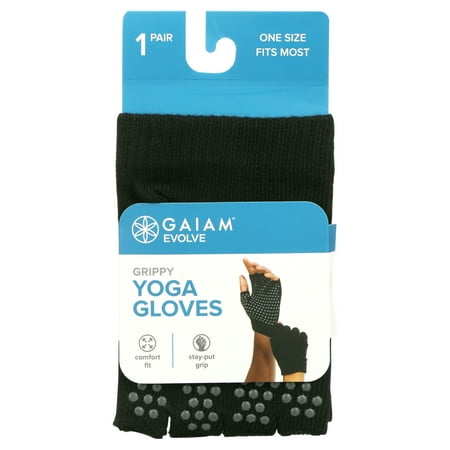Gaiam Grippy Yoga Gloves, Small/Medium, One-Size, Black: Finger-and-palm targeted traction design Silicon grip provides non-slip surface anytime, anywhere Use with or without a mat to increase balance and stability One size fits most